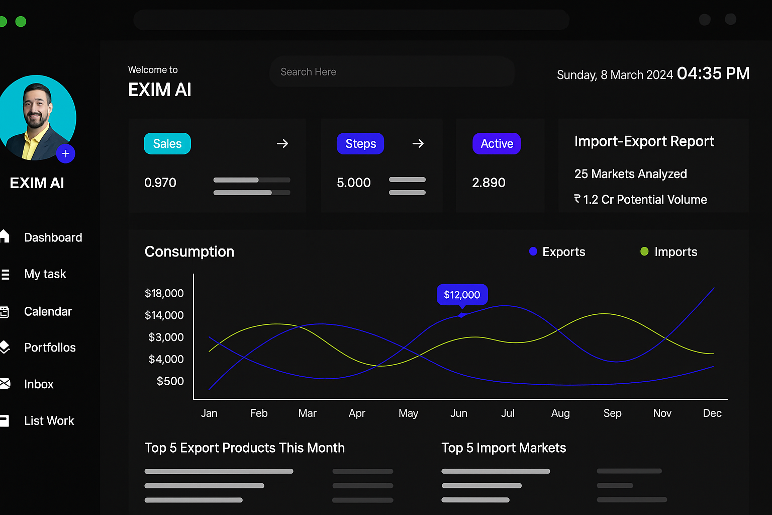 EXIM AI gives you easy-to-read reports showing best-selling products, top export markets, and profit trends — no complex data needed.